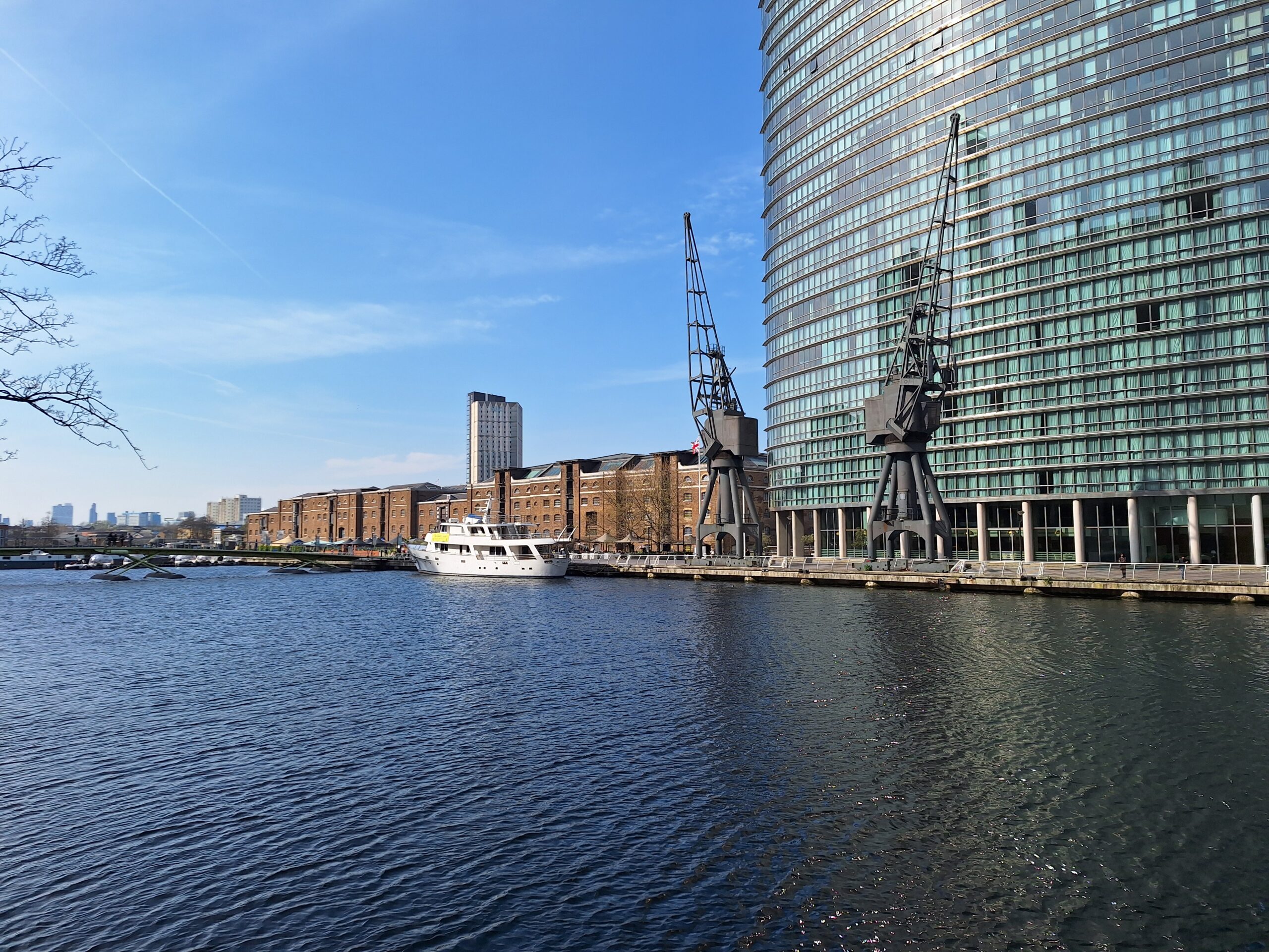 Canary Wharf tiene lugares abarrotados de trabajadores trajeados que van y vienen de sus oficinas, y tiene lugares llenos de paz para caminar junto a las grandes extensiones de agua desviada del río Támesis para llenar sus muelles, hoy en día con algunos yates privados y barcos de ocio.