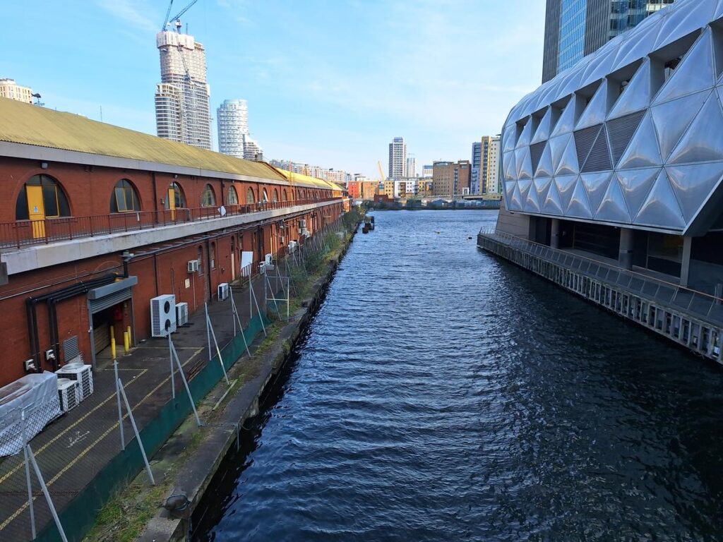 Enseguida encontramos el tercero de los muelles, llamado South Dock o Muelle Sur, que fue completado entre 1802 y 1804 como los anteriores. Originalmente estaba conectado por esclusas y canales con los otros muelles facilitando el tránsito de barcos, y contaba con almacenes y oficinas como las que vimos en el North Dock pero que en este caso ya no se conservan.