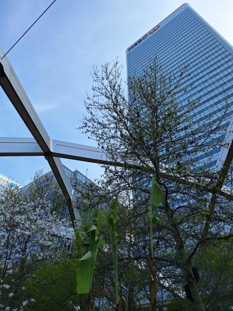 Cruzando un rico jardín interior llamado Crossrail Place Roof Garden se llega de vuelta al North Dock, el primer muelle que vimos en nuestro recorrido.