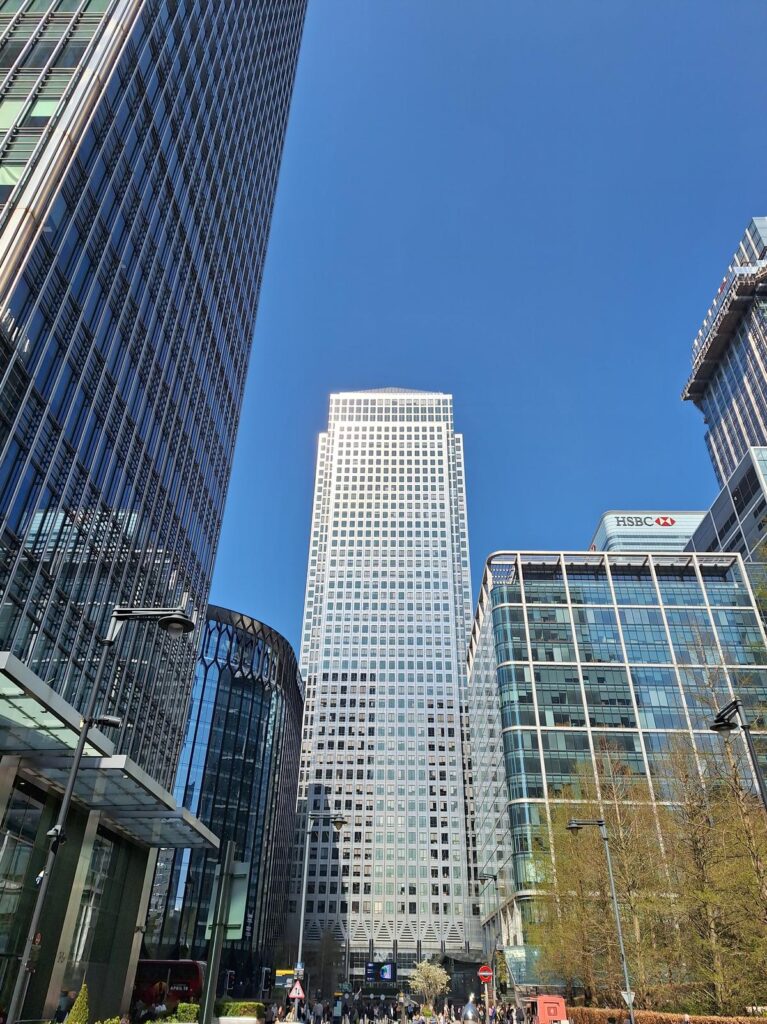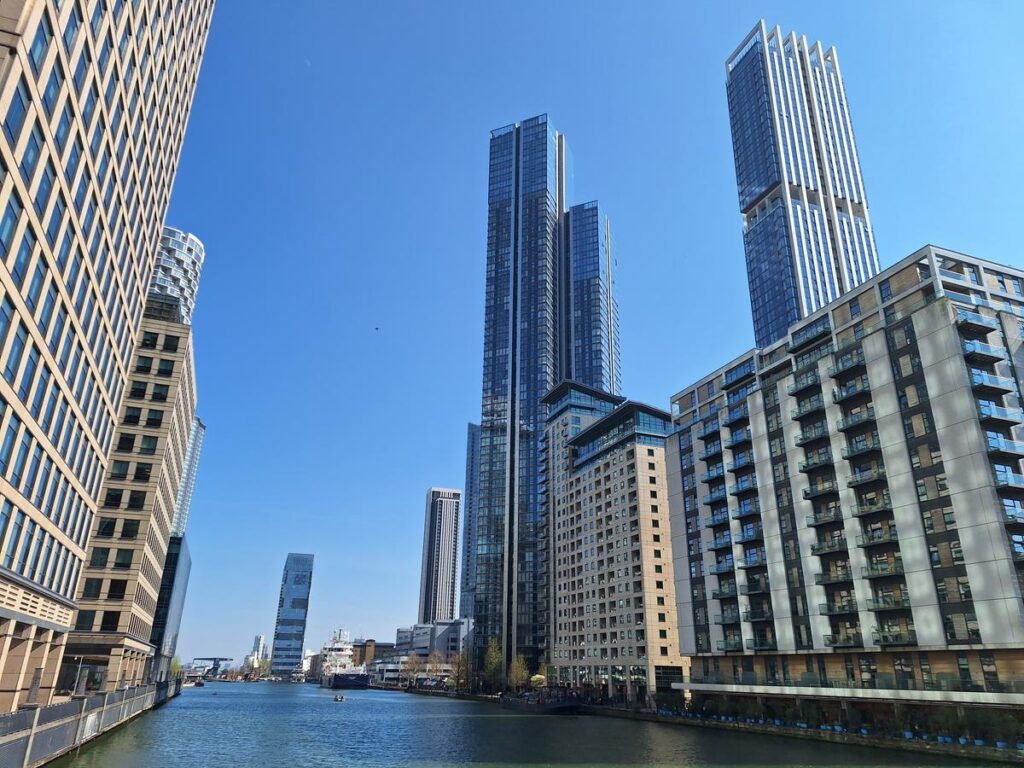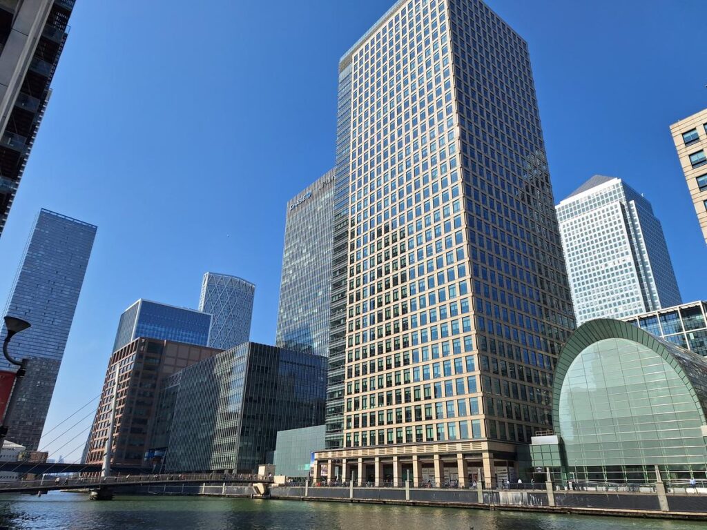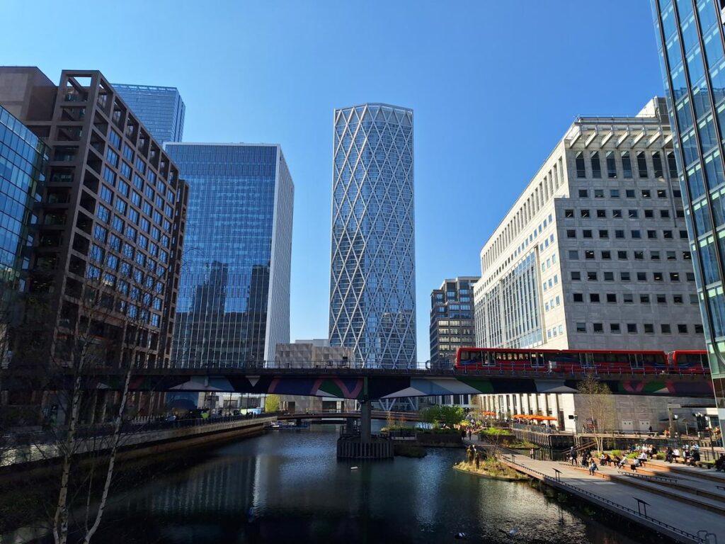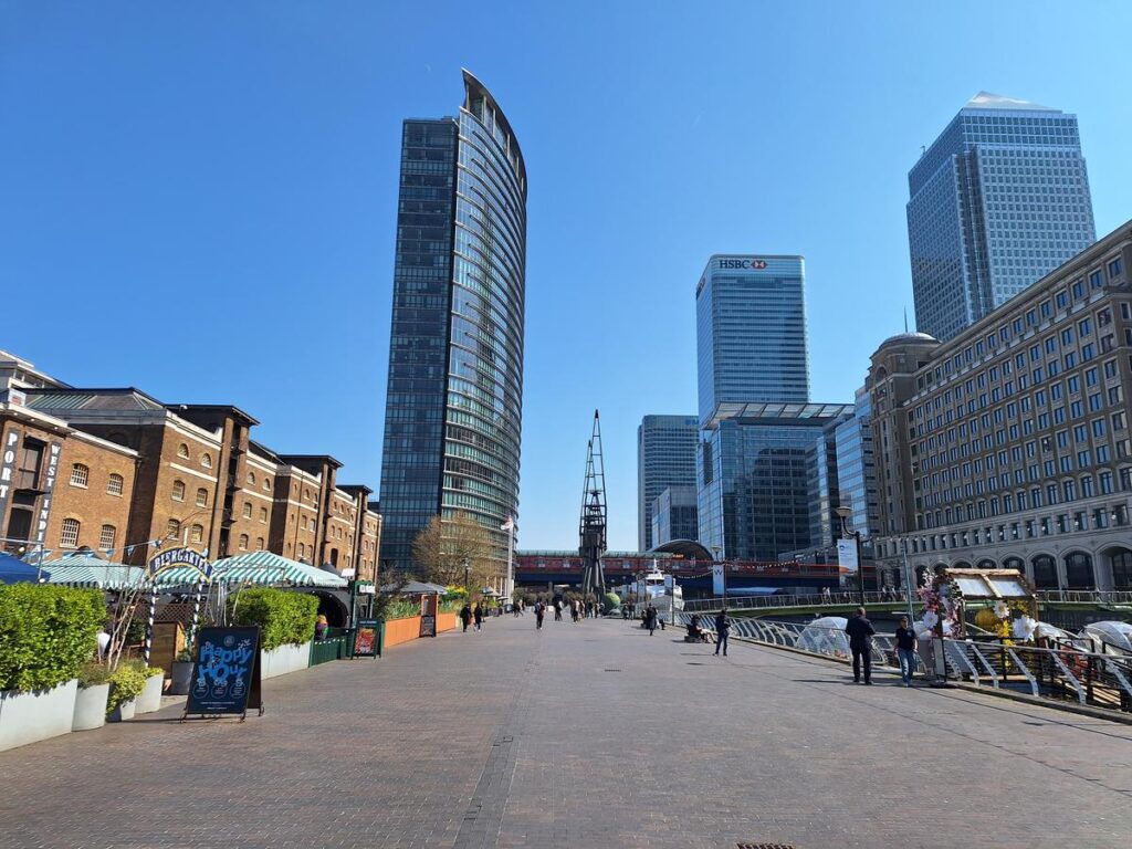 Entre los edificios está el rascacielos más alto de la zona One Canada Square que ya vimos antes desde el lado contrario.
