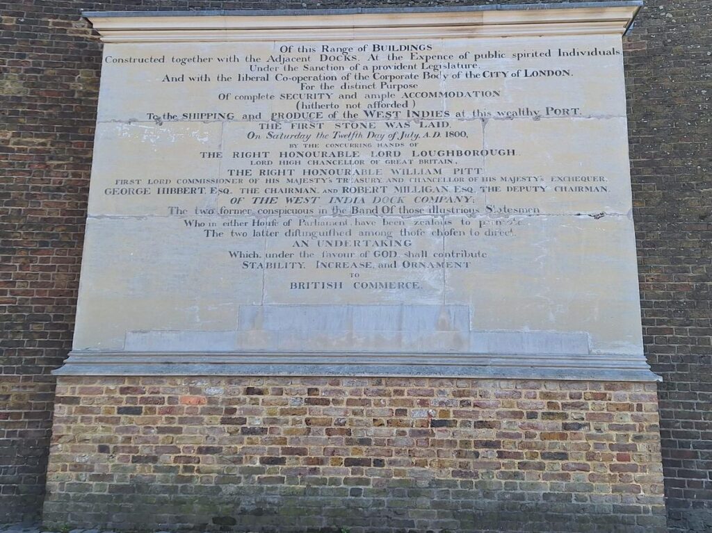Anteriormente los barcos de mercancías se acumulaban en pleno río Támesis en el centro de Londres, mientras barcos más pequeños ayudaban a la carga y descarga de sus mercancías. Pero este proceso lento y caótico provocaban una gran cantidad de robos.
