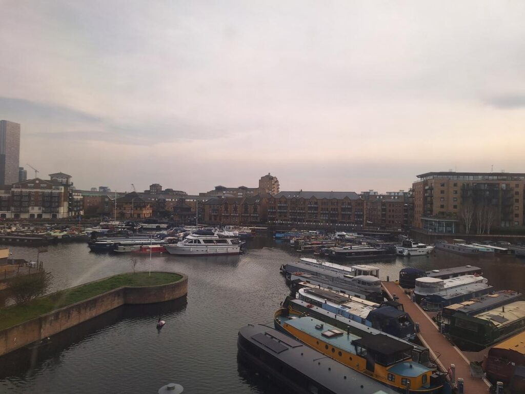 El metro nos regalan unas fantásticas vistas de otro barrio cercano Limehouse para despedirnos, también conectado con la vida marítima ya que tiene su propio muelle junto al río Támesis, anteriormente usado para mercancías y hoy repleto de yates e incluso casas-barco que en su interior contienen viviendas.