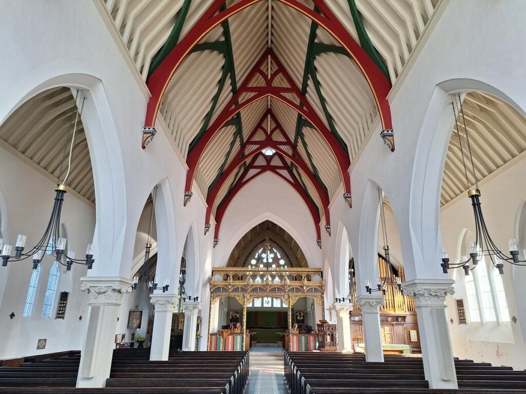 Su interior es sencillo pero muy bonito, propiamente característico del estilo barroco inglés del siglo XVIII.