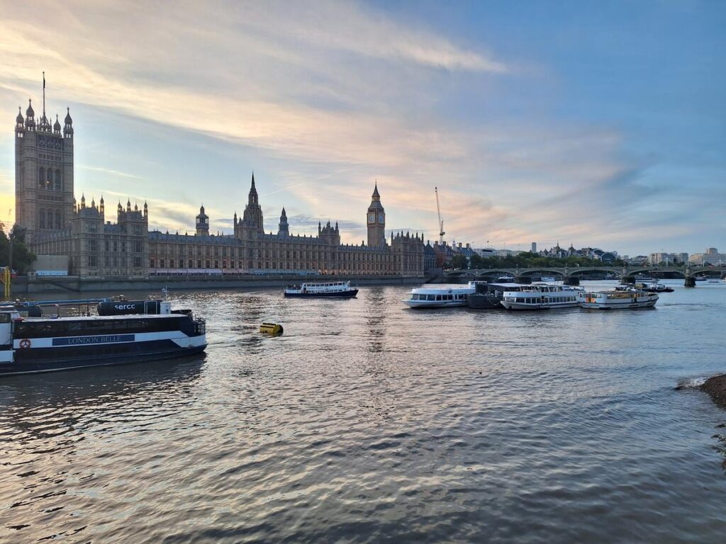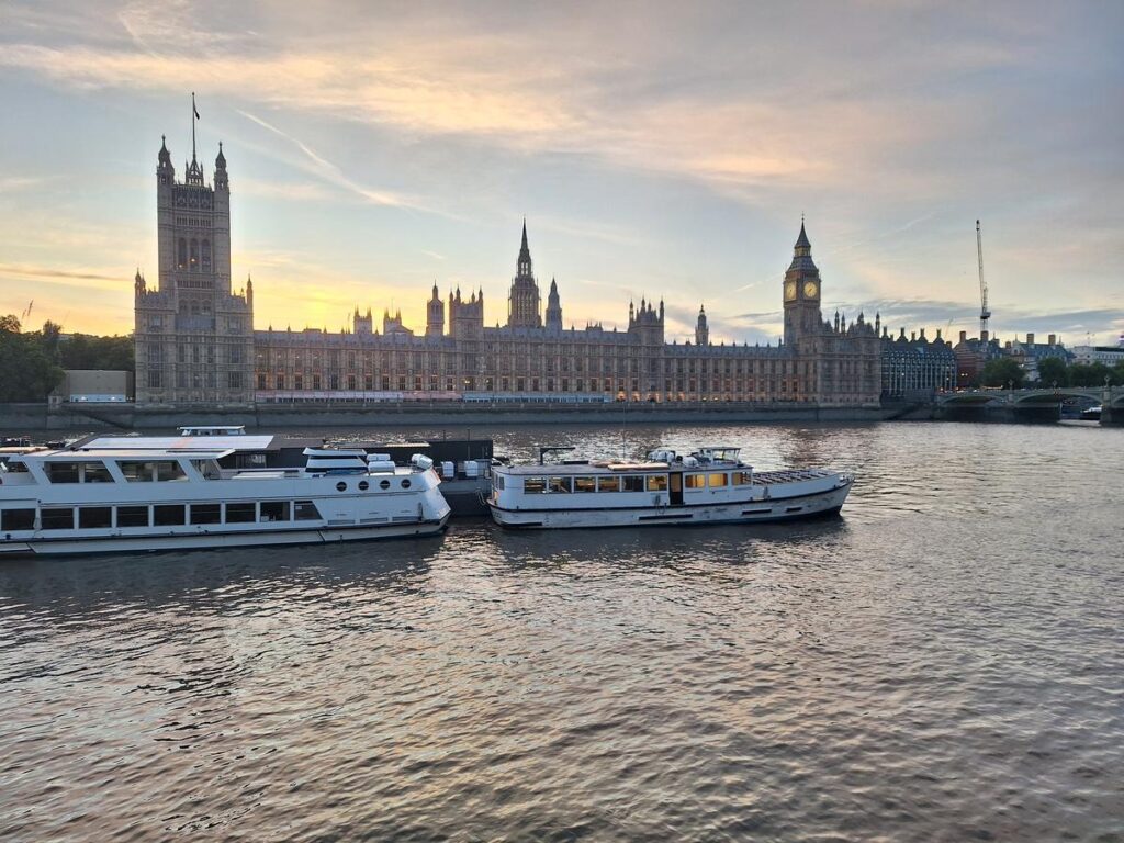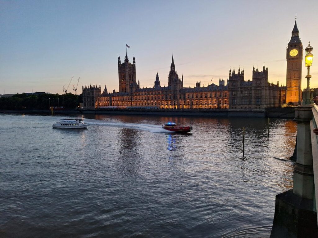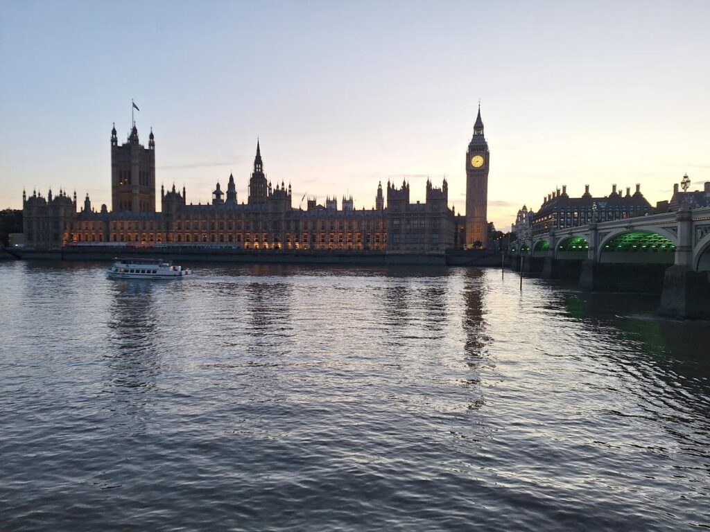 El Palacio de Westminster alberga el Parlamento y fue construido desde 1840 hasta 1876, reemplazando el palacio real medieval que se había quemado en un incendio. El famoso Big Ben es la torre del reloj que pertenece al palacio.