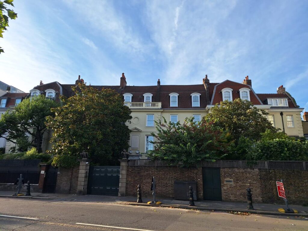 Junto al puente se encuentra una mansión asomándose al río que llama la atención, es Lindsey House. Esta es una de las casas más antiguas del barrio de Chelsea, construida en 1674 sobre los antiguos jardines de Thomas More, el famoso canciller de Enrique VIII.