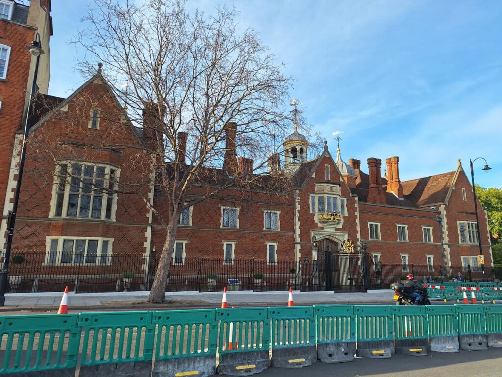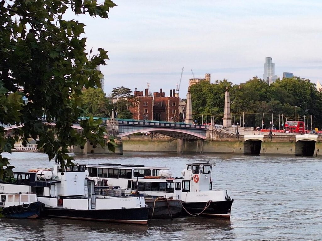 Antes podemos ver ya más de cerca el mencionado edificio Tudor del siglo XIII y una iglesia del siglo XIV junto a él, es el Palacio de Lambeth.