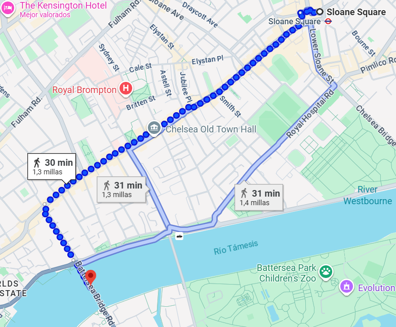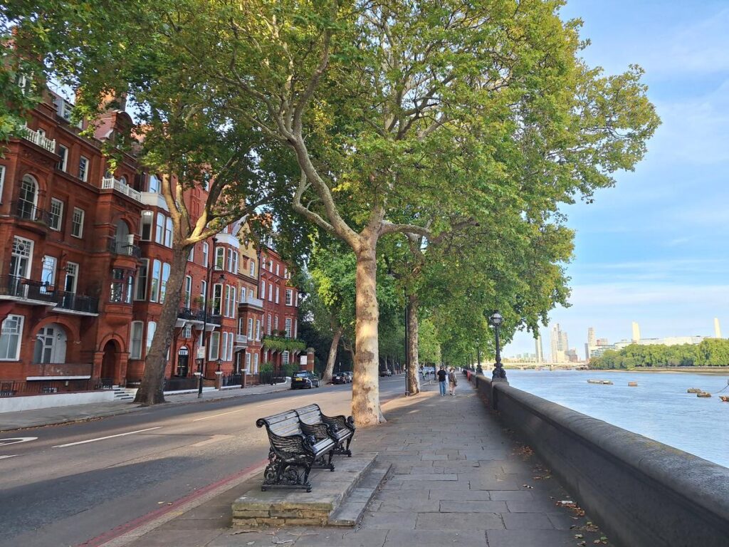 Para llegar al punto inicial del paseo recomiendo tomar el metro hasta Sloane Square, y recorrer la calle principal de Chelsea llamada Kings Road preciosa de por sí, para después torcer a la izquierda y así llegar al río.
