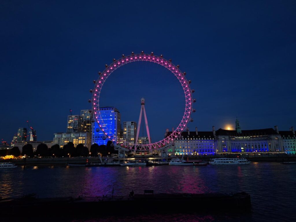 Aún así, podemos saborear este final un poco más dedicando unos minutos a observar el London Eye ya iluminado, girando lentamente mientras la luna comienza a salir por encima de los edificios.