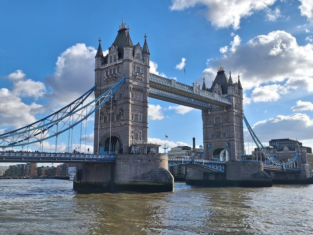 Construido en 1894, fue un símbolo de la ingeniería victoriana, aunque se le dio un aspecto más medieval para que estuviera en armonía con la vecina Torre de Londres. Debajo de esas fachadas de piedra hay en realidad un armazón de acero que lo sostiene. Y sus dos secciones centrales se elevan para dejar pasar barcos de gran tamaño, incluso a veces enormes cruceros, mientras que las dos pasarelas superiores se utilizaban para el paso de los transeúntes cuando el puente estaba elevado. Hoy se puede subir a las pasarelas como parte del museo que el puente alberga y caminar sobre su famoso suelo de cristal. También podemos admirar como el puente se eleva cuando algunos barcos lo cruzan, e incluso consultar en la pagina web del puente los horarios en que se eleva.